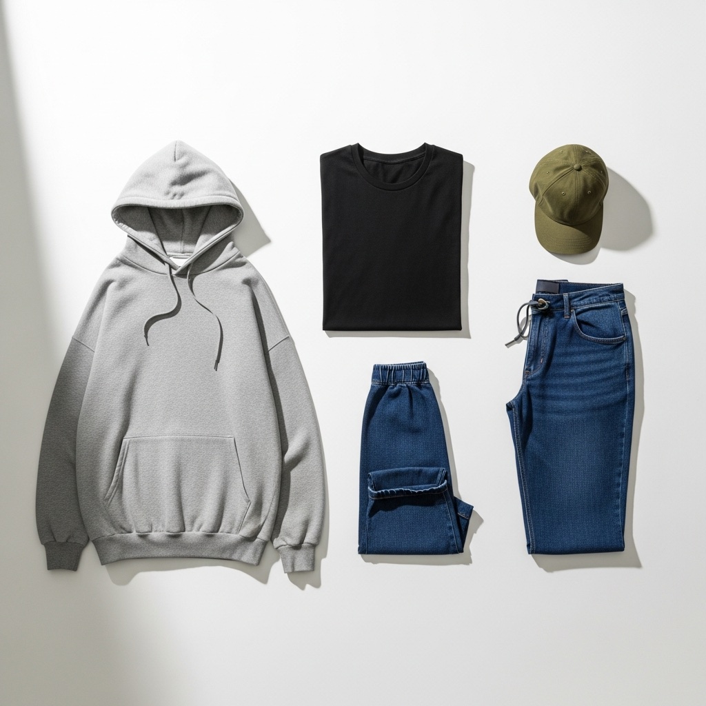 T-shirts, hoodies, joggers, denim and seasonal collections. Custom prints, embroidery and washes accepted. MOQ from 200 units, accessible for independent brands and e-commerce labels.